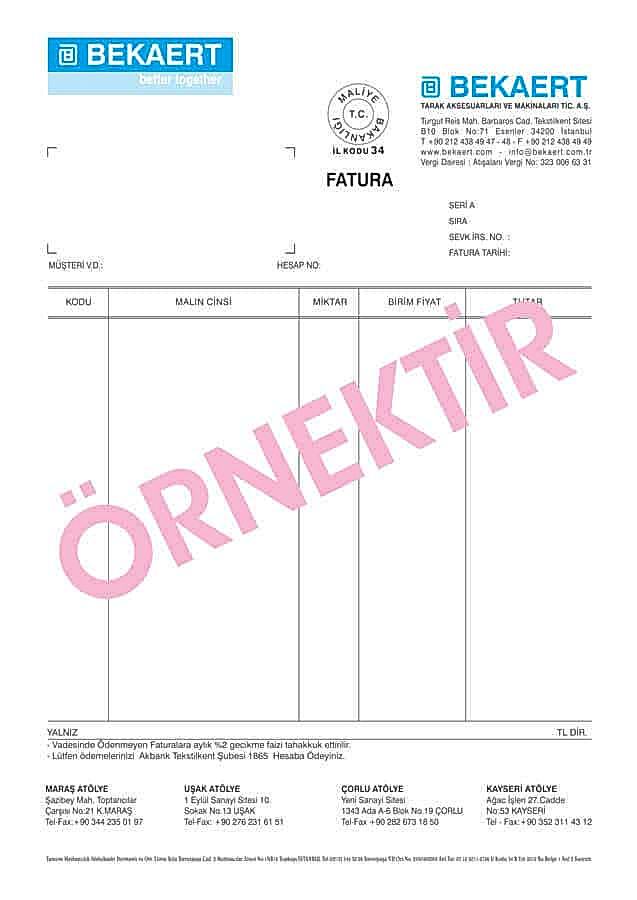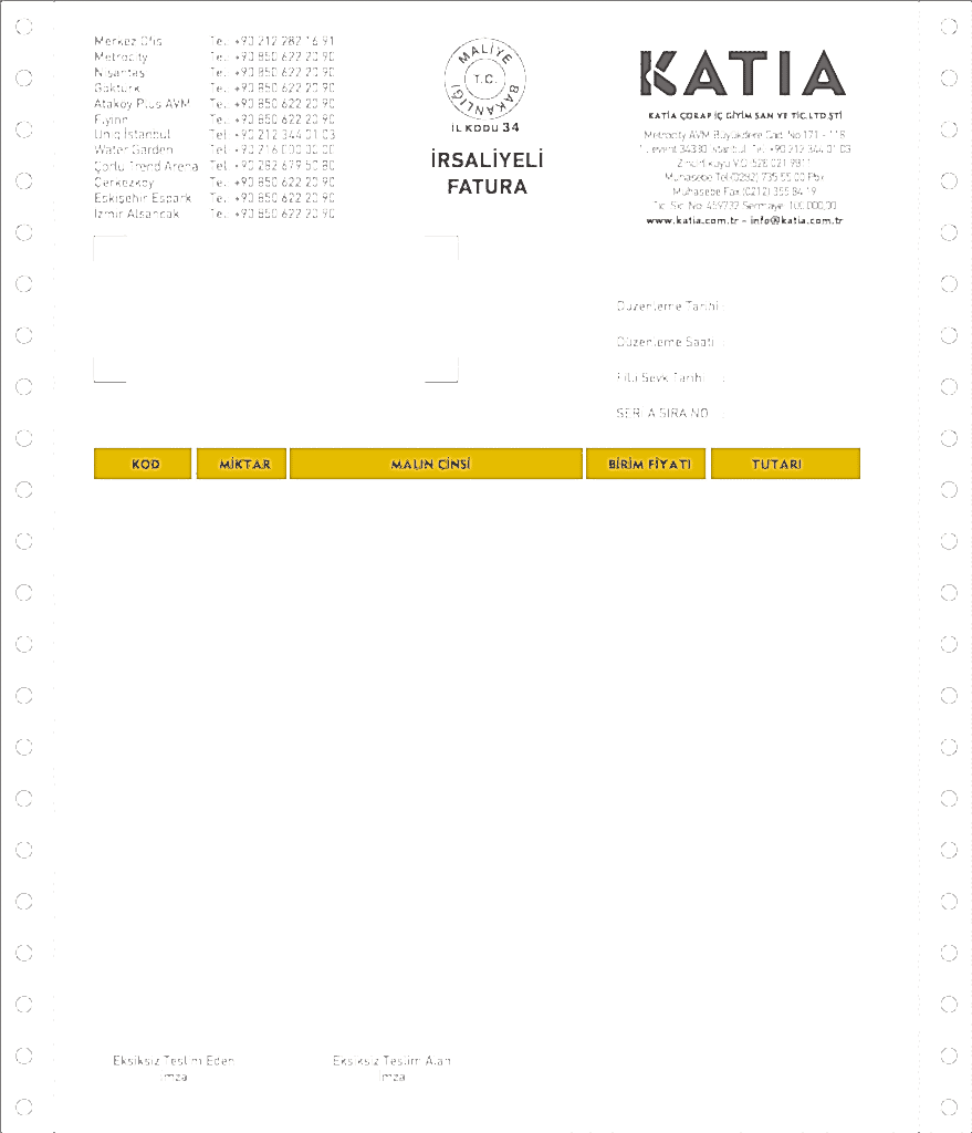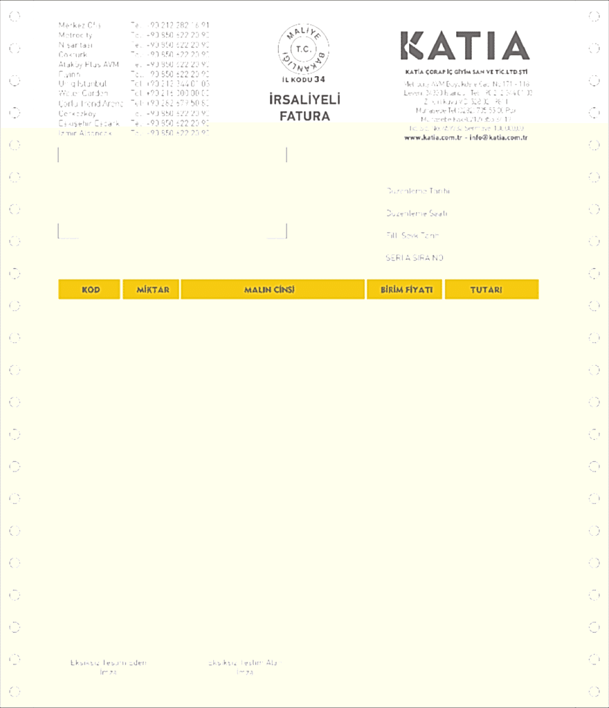 - Faturanın sürekli form, ciltli yada lazer yazıcıya uygun olması