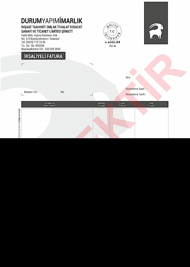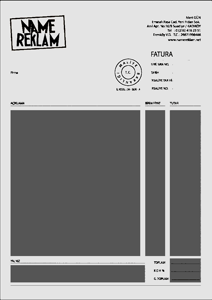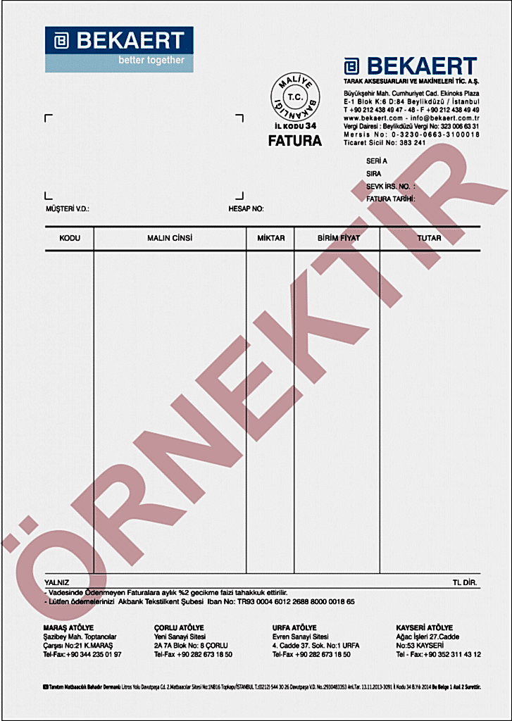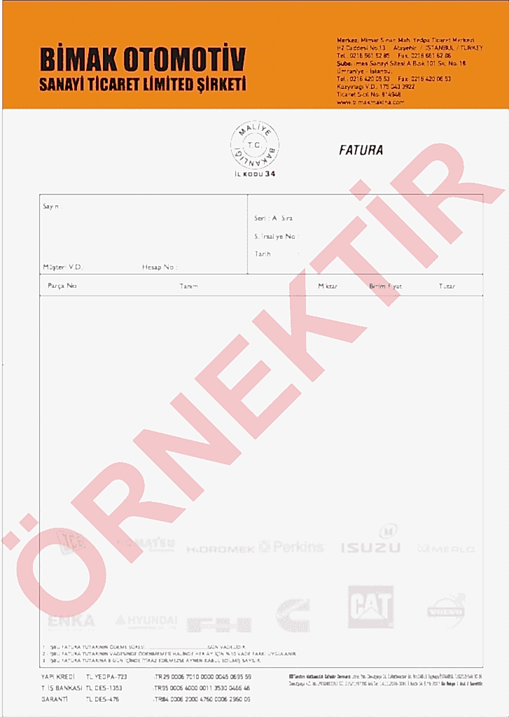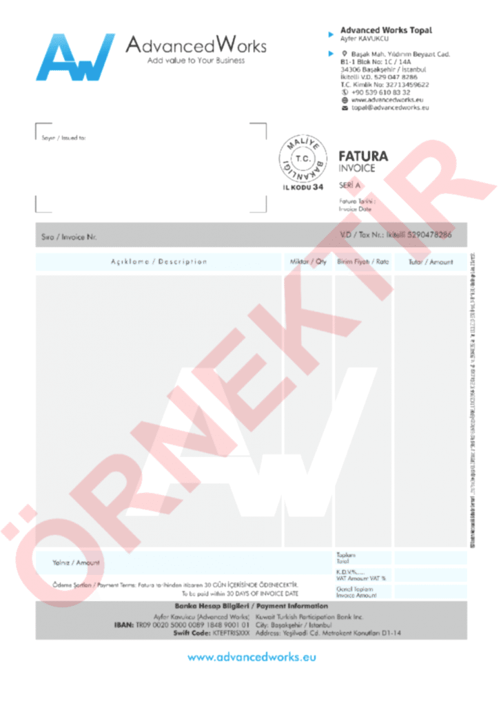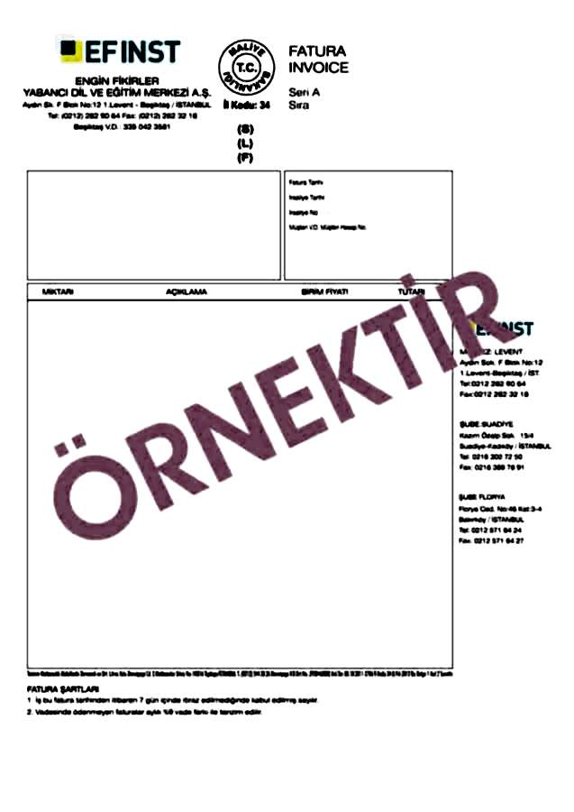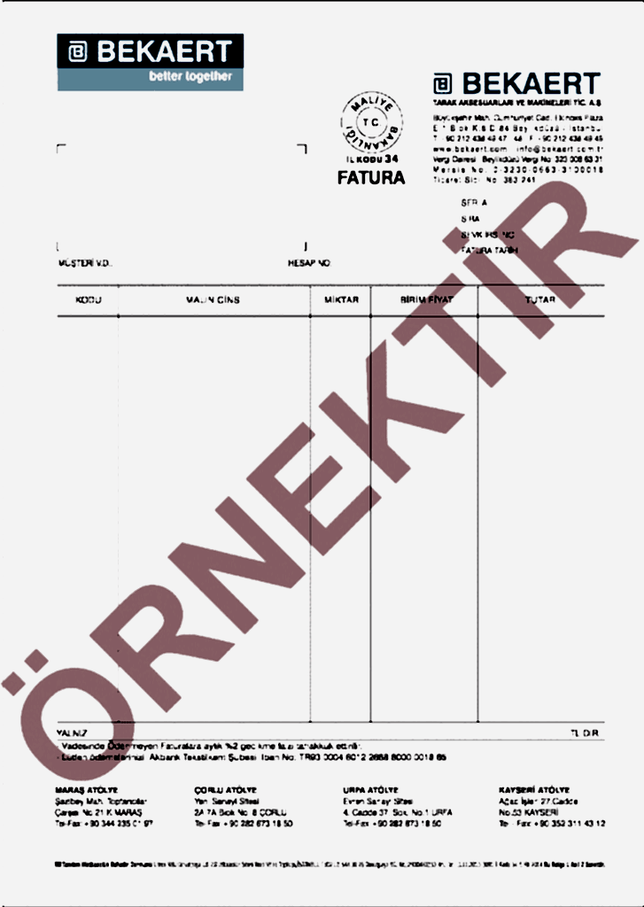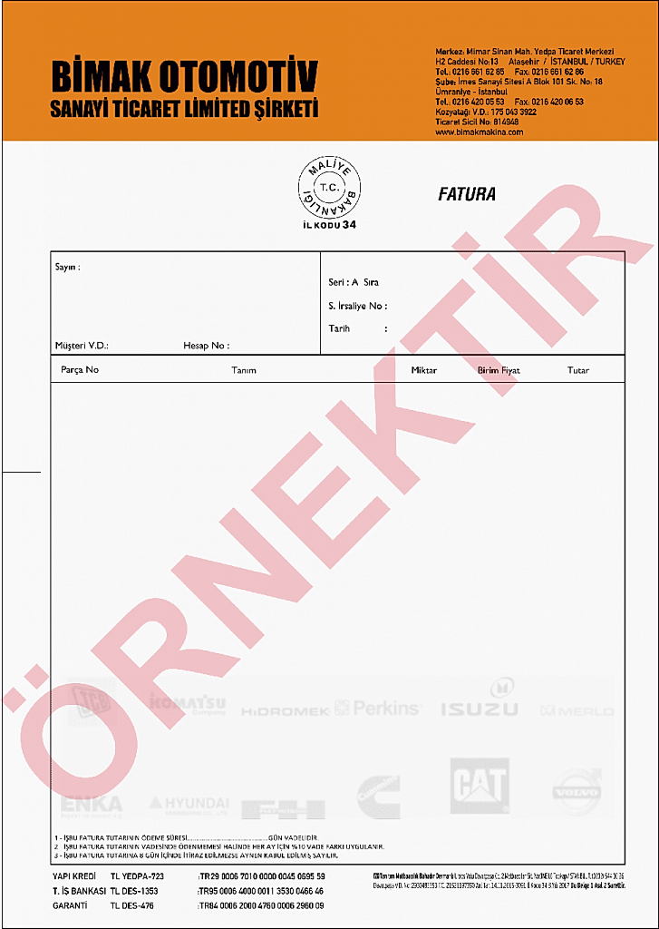 Sizlere en uygun fatura türünü seçerek kolaylıkla sipariş verebilirsiniz. Siparişinizi en kısa sürede üreterek tarafınıza teslim edeceğiz.