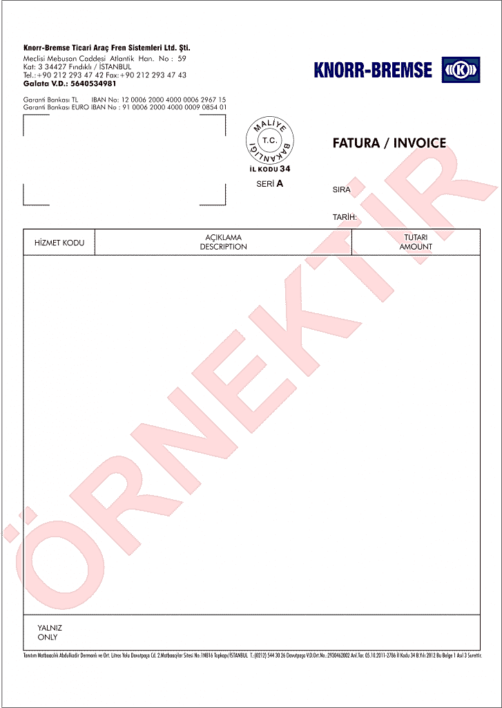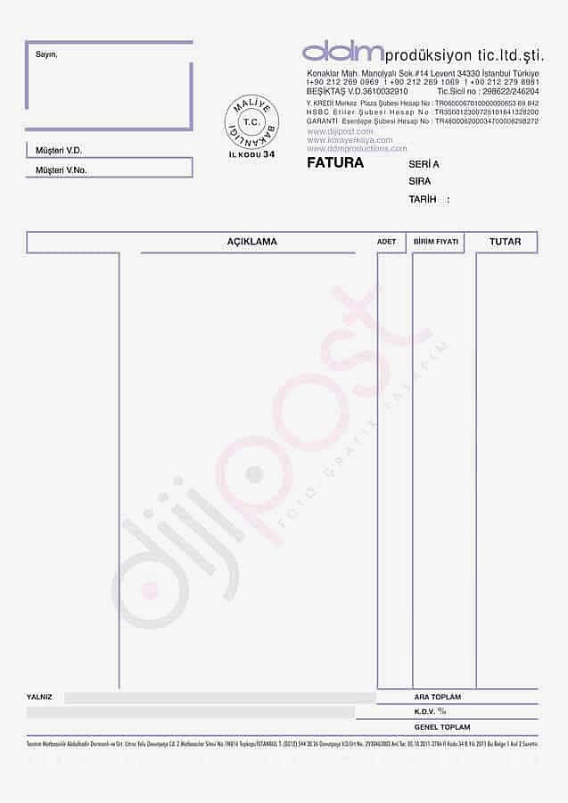 Fatura basımı resmi bir evraktır. Resmi evrak basımları Maliye Bakanlığınca belirlenen maliye ile anlaşmalı matbaa firmaları tarafından yapılmaktadır. Firmamız İstanbul ilinde yetkili 3091 yetki numaralı anlaşmalı matbaa firmasıdır.