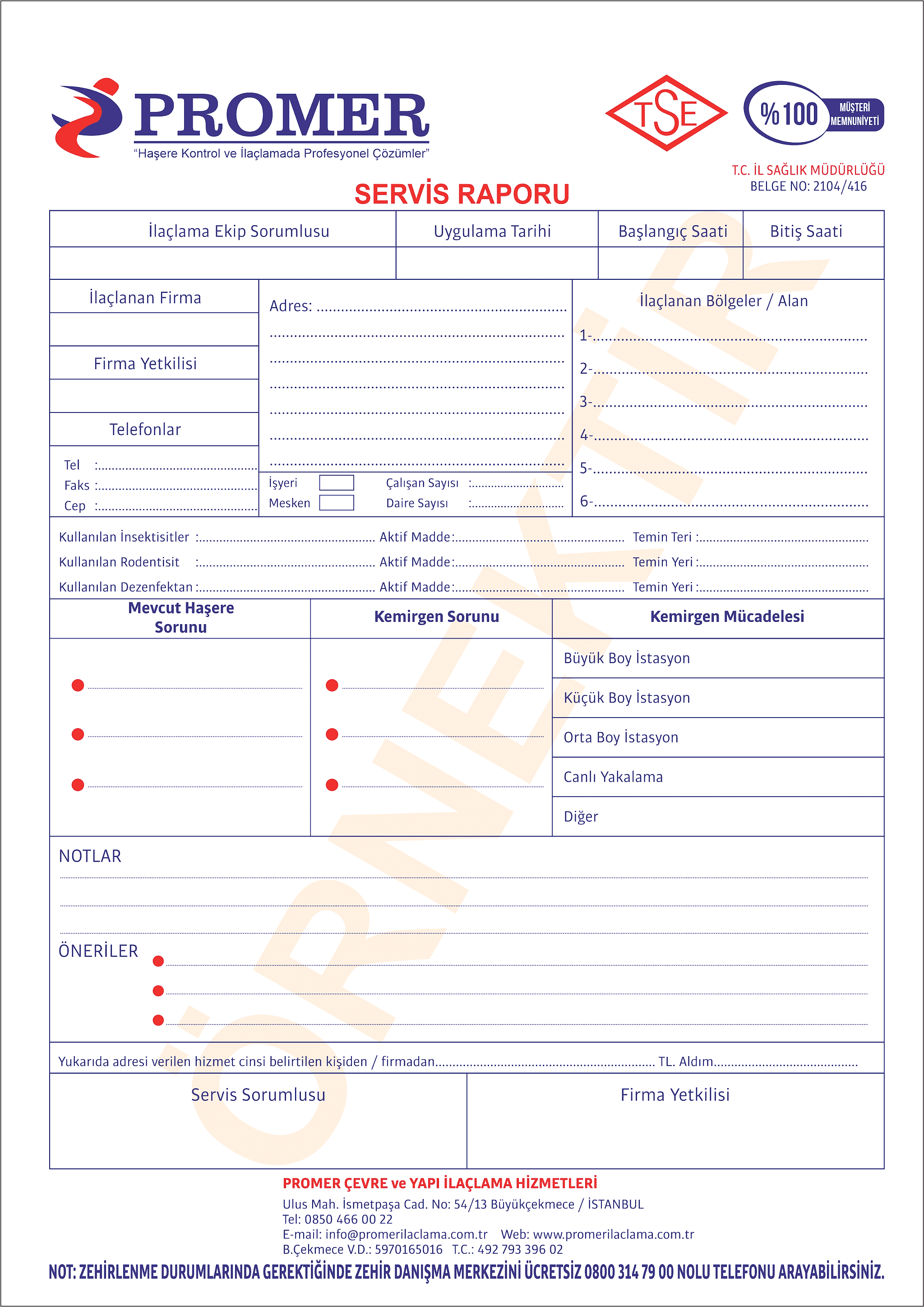 Promer İlaçlama ve Dezenfekte Formu