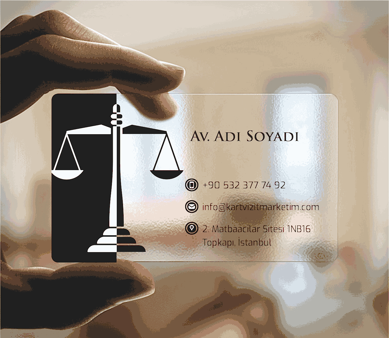 siyah beyaz avukat şeffaf kartvizit