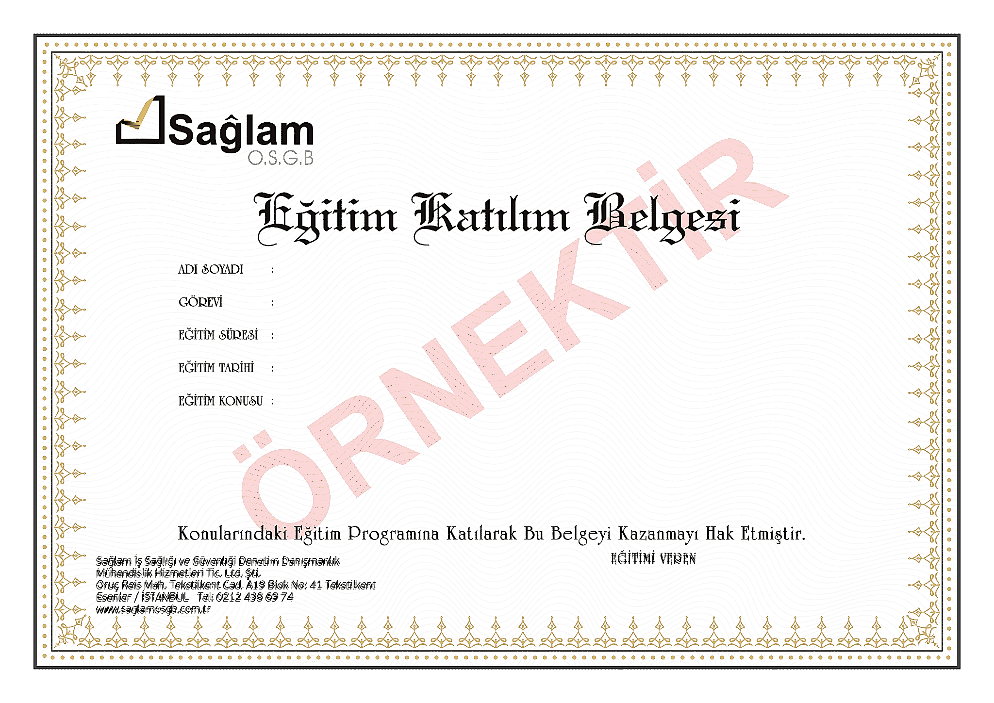 OSGB Eğitim Sertifikası